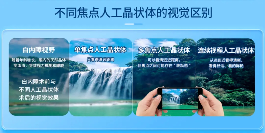 个性化选择:人工晶状体分多焦点、景深增强型等,可根据用眼需求定制(如频繁用电脑选“中远距优化型”,爱读书选“近距增强型”)。